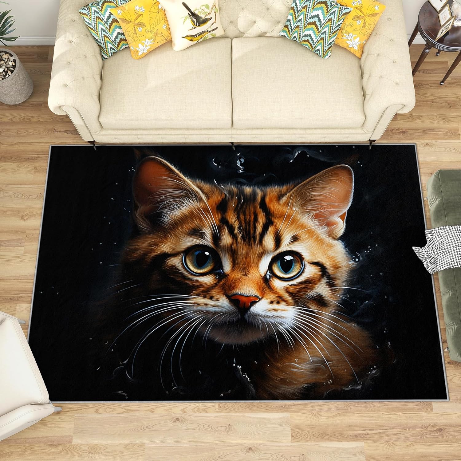 Cat Rug & Home Decorations 2x3 area rug / 60x90 cm ⭐ Features ● Super Soft Area Rug Ultra soft and luxury to the touch, this lightweight floor carpet is made from skin-friendly, safe and kid friendly materials to pamper and relax your feet ● Upgraded Non-slip Bottom This alfombras feature a dense and durable TPR rubber backing that help increase friction with the floor and prevent sliding ● Room Decor Say goodbye to boring plain carpet and decorate your room with this excellent printed alfombra Perfect for livingroom, bedrooms, classroom, guest room, hallway, home office, kitchen, laundry room, study room and so on ● Well Made This machine made rug is tightly woven and has neat edge, making it more durable Our carpet adopts advanced 3d digital printing technology with clear pattern, high color fastness and no fading ● Pet Friendly Cats and dogs will also love this comfortable area rug because of the quality fabric choice ● Easy To Clean For partial cleaning, just wipe with a damp cloth or low frequency vacuuming For Integral cleaning, we recommend that you machine wash / hand wash it with room temperature water, then air dry ⭐ Customer Service If you have any questions about our products, please feel free to contact us, we have professional customer service staff to serve you