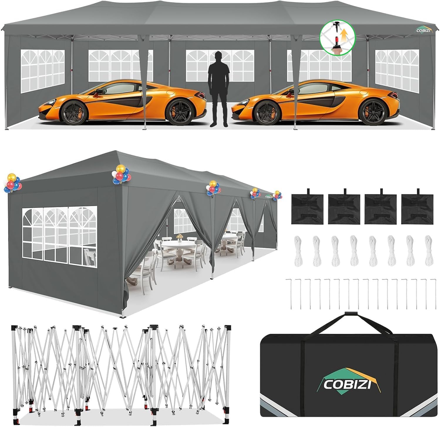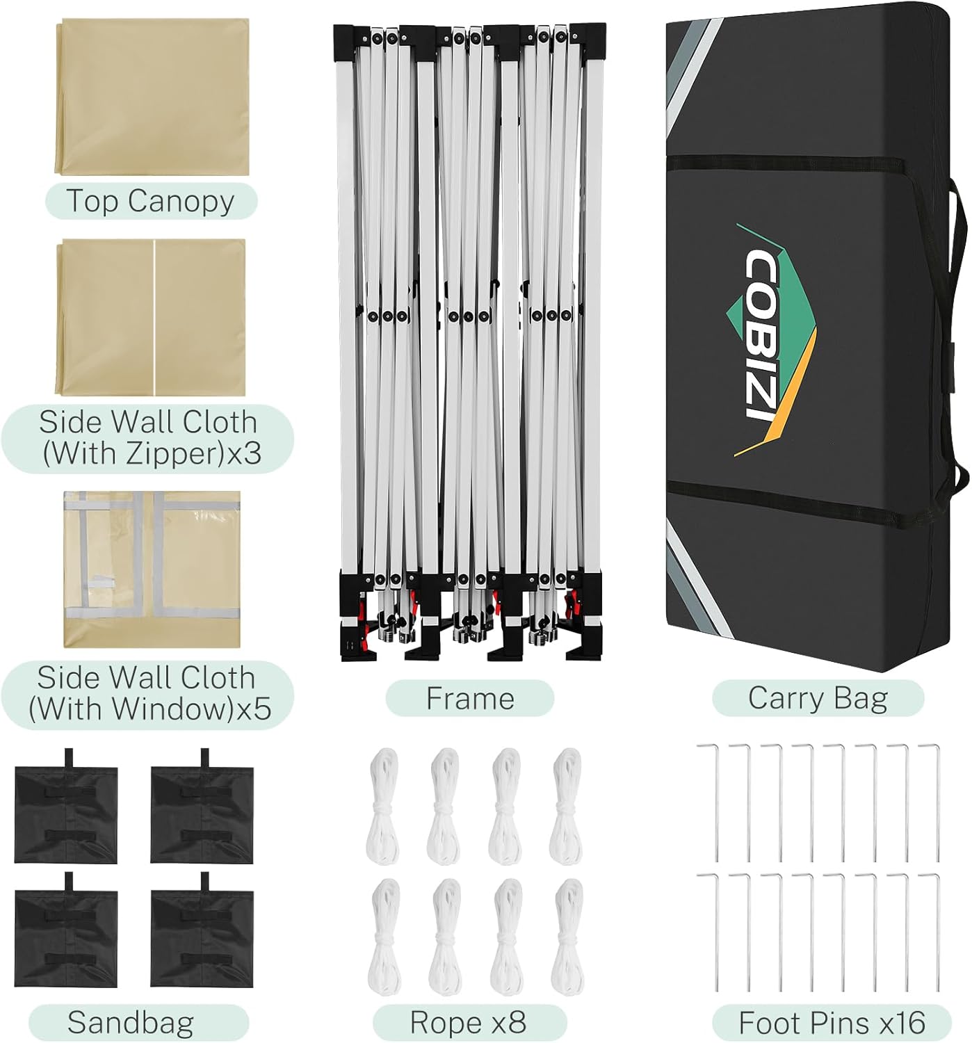 COBIZI 10x20 Pop Up Canopy Tent with 6 Sidewalls Party Tents for Parties Weddings Backyard Waterproof Commercial Instant Outdoor Events Tent with Stakes, Ropes(10 x 20 ft Black