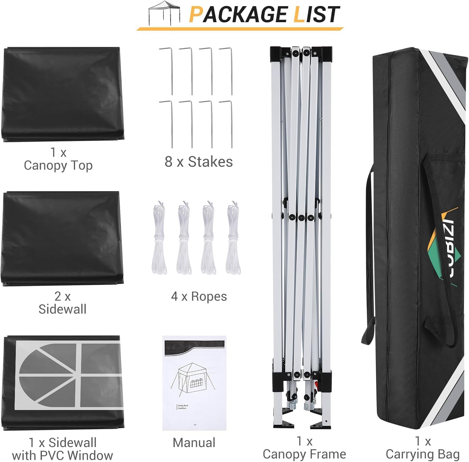 • 【Versatile Removable Sidewalls】 This canopy 10x20 includes 6 removable sidewalls, with a featuring arched windows for a clear view. The sidewalls of instant canopy can be easily attached or removed, providing flexibility for various occasions, whether it's a backyard gathering or a commercial event.