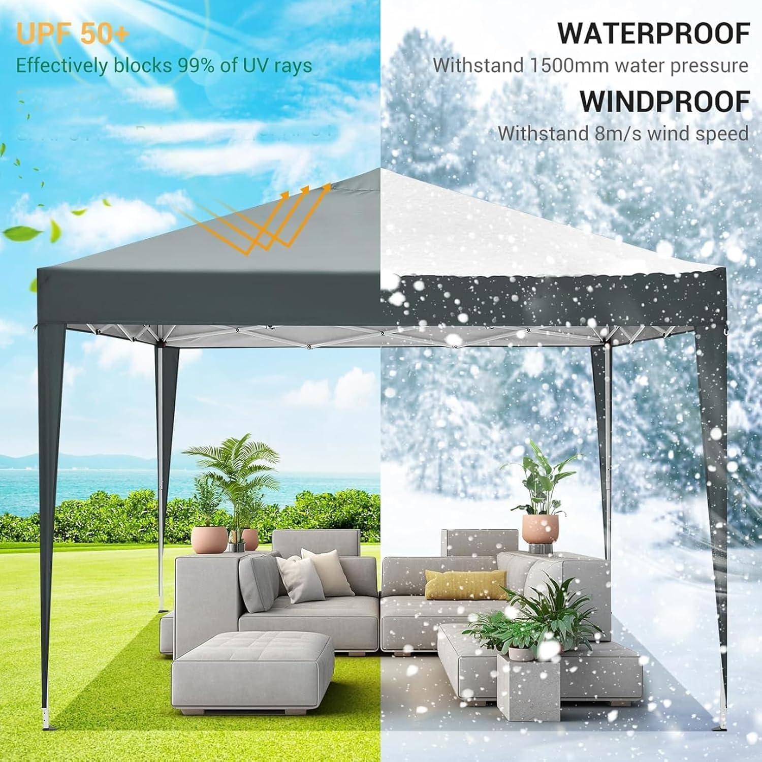 • 【Waterproof and UV Protection】Constructed with high quality 210D Oxford fabric, this ez pop up canopy tent is 99.99% waterproof and features a UV silver coating for UPF 50+ protection, blocking 99.99% of harmful UV rays. The sturdy, powder-coated steel frame is rust-resistant and designed for longevity. Easy-to-use spring clips ensure a secure setup without pinching fingers.