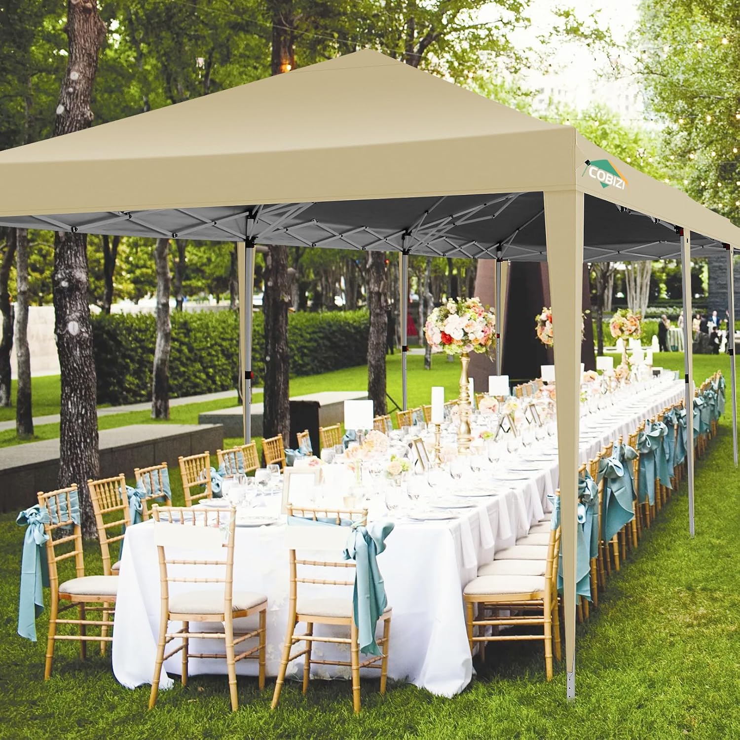 • 【Easy Set up and Takedown】10x20 pop up canopy tent is designed for hassle-free setup and takedown. With no tools required, two people can easily set it up by extending the legs and securing the frame. The 10x20 canopy folds neatly into the included carry bag for easy transportation and storage, making it perfect for any outdoor event.