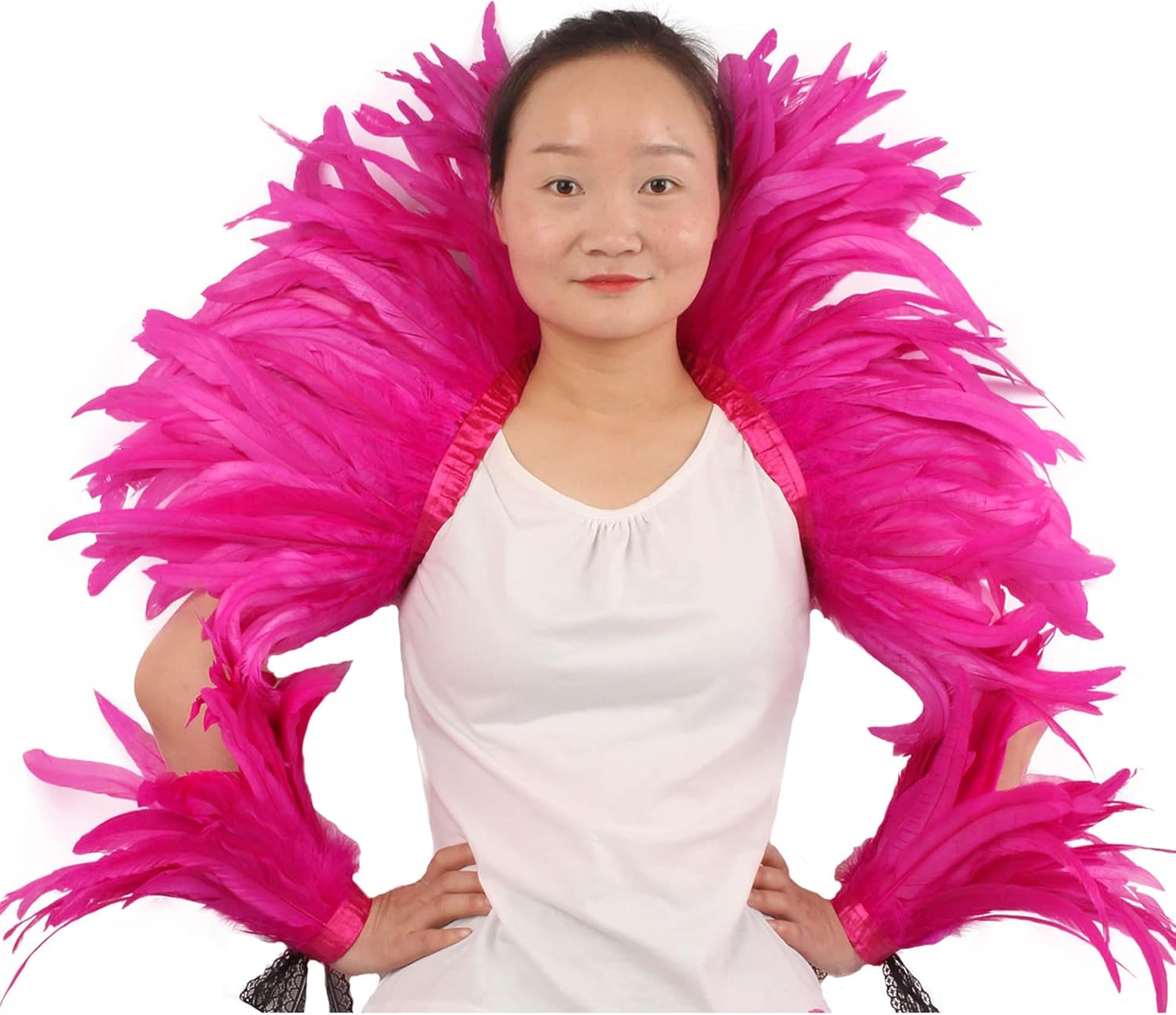 This feather collar shoulder shawl and wrist cuffs will make you the center of attention for all occasions, the most beautiful woman.