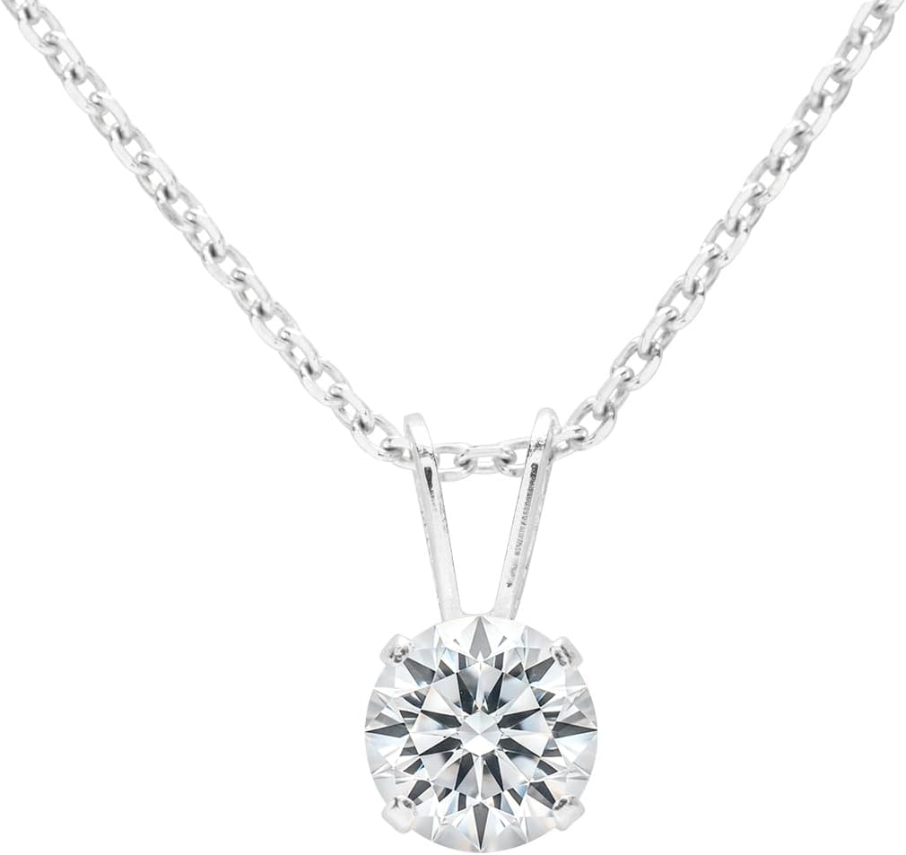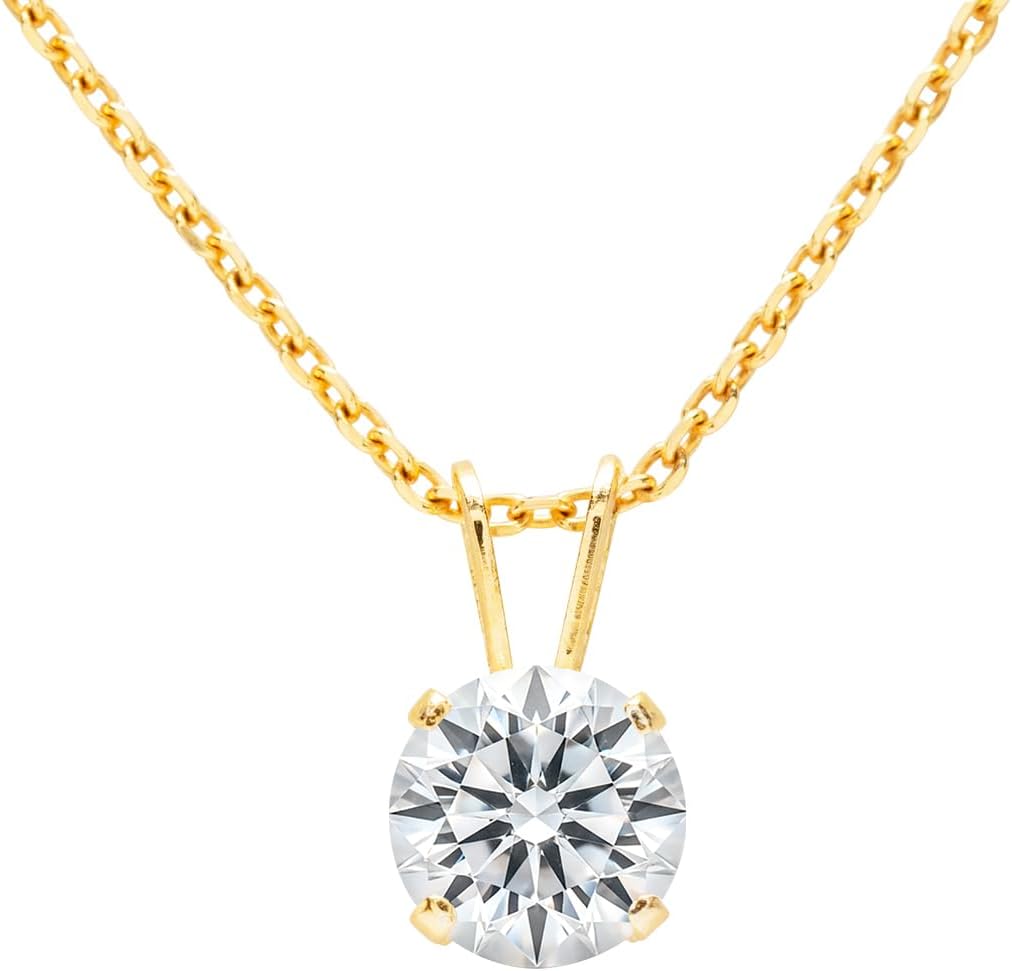 This stunning lab grown diamond necklace is the perfect addition to any jewelry collection. Featuring a brilliant lab grown diamond with G-H color and VS clarity, it exudes timeless elegance and beauty. Available in all carat weights, you can choose the perfect size to suit your style and preference. Crafted in high-quality 14K white or yellow gold-filled metal, this necklace offers both luxury and durability. The lab grown diamond sits securely in a classic solitaire setting, allowing its natural brilliance to shine. The necklace comes with a complimentary 18-inch sterling silver cable chain with a secure spring-ring clasp, ensuring a comfortable and stylish fit.