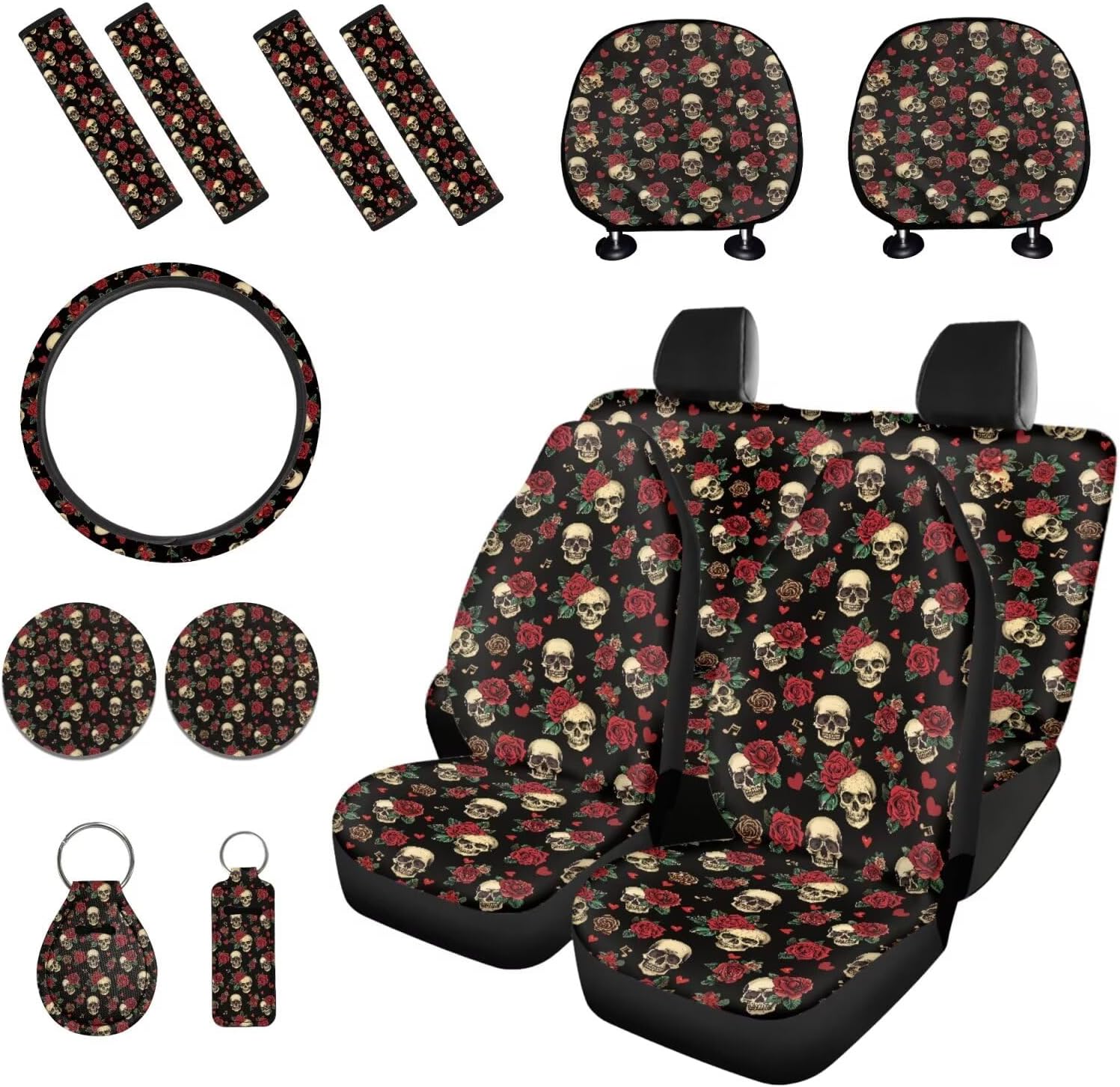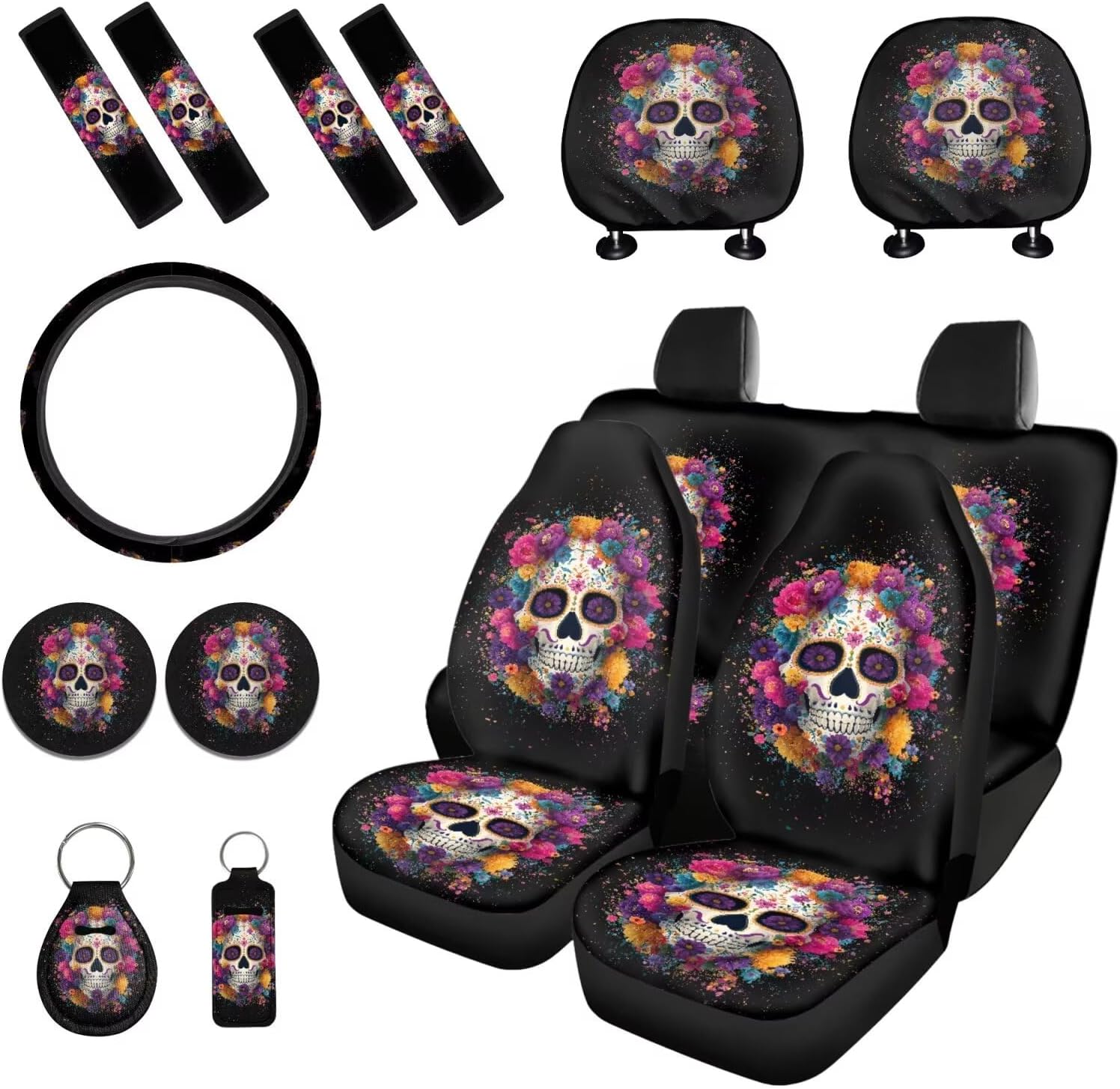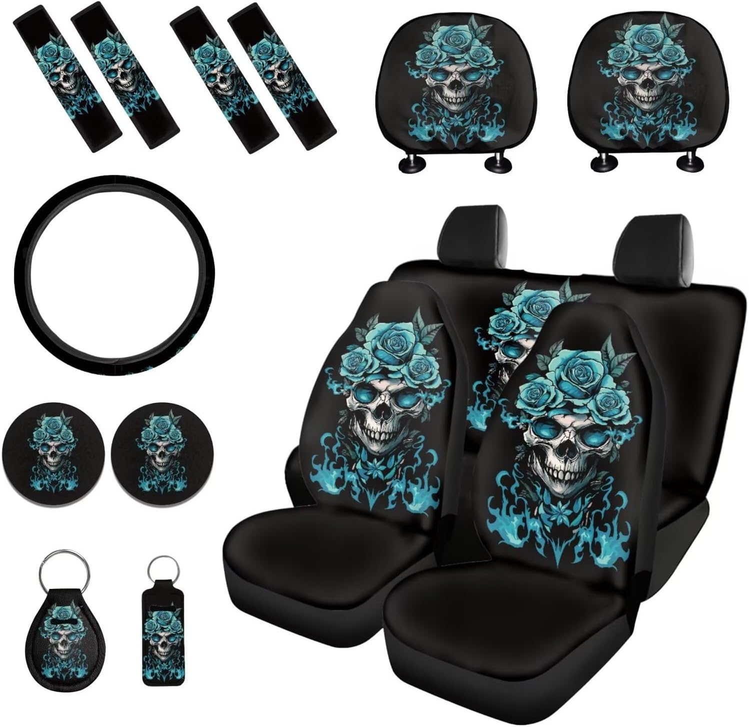 Package includes: 2 front and 2 rear seat covers 1 steering wheel cover, 4 seat belt covers, 2 car headrest cover 2 car coaster 1 keychain 1 lipstick holder keychian These car seat cover set are suitable as gifts for people who own cars, such as your family, friends, neighbors, colleagues, etc. They are practical and exquisite gifts. This full set car accessories not only beautifully decorates your car, but also keeps the interior clean; And they are easy to install, do not require any other tools, convenient and simple. Tips: Hand washable, do not soak for a long time, do not bleach, and the temperature of the detergent should not exceed 45 º C. Due to different measurement methods, please allow for an error of 1-2cm in this size data.