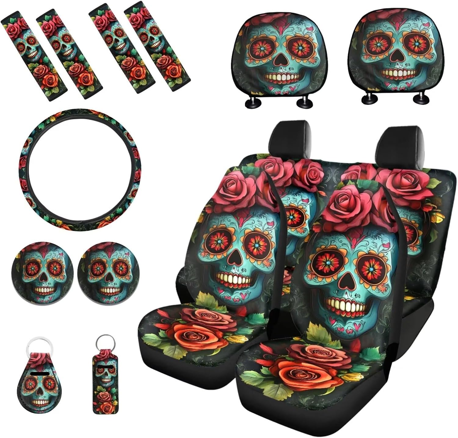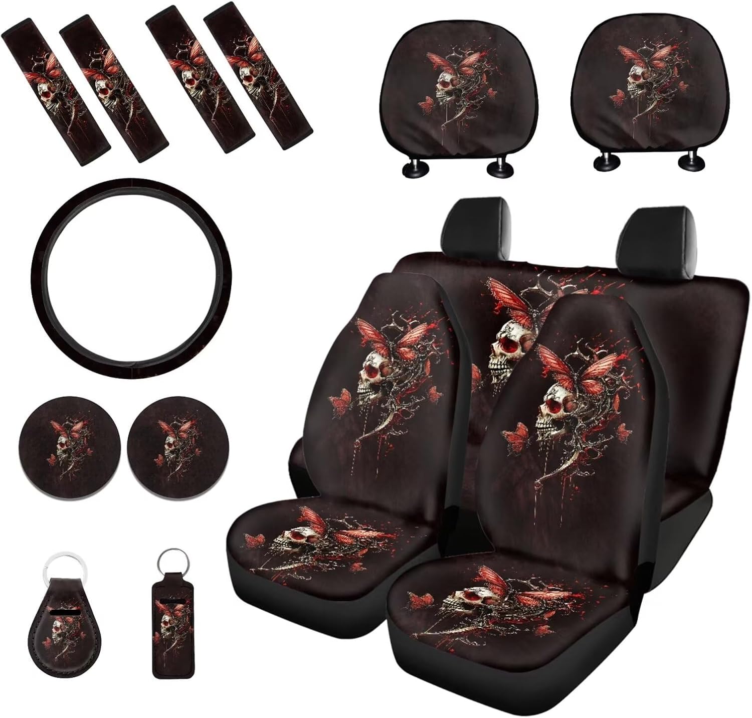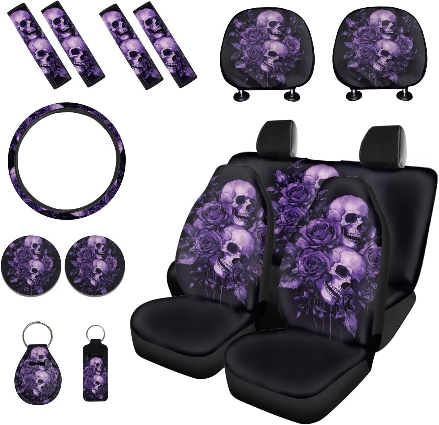 Package includes: 2 front and 2 rear seat covers 1 steering wheel cover, 4 seat belt covers, 2 car headrest cover 2 car coaster 1 keychain 1 lipstick holder keychian These car seat cover set are suitable as gifts for people who own cars, such as your family, friends, neighbors, colleagues, etc. They are practical and exquisite gifts. This full set car accessories not only beautifully decorates your car, but also keeps the interior clean; And they are easy to install, do not require any other tools, convenient and simple. Tips: Hand washable, do not soak for a long time, do not bleach, and the temperature of the detergent should not exceed 45 º C. Due to different measurement methods, please allow for an error of 1-2cm in this size data.